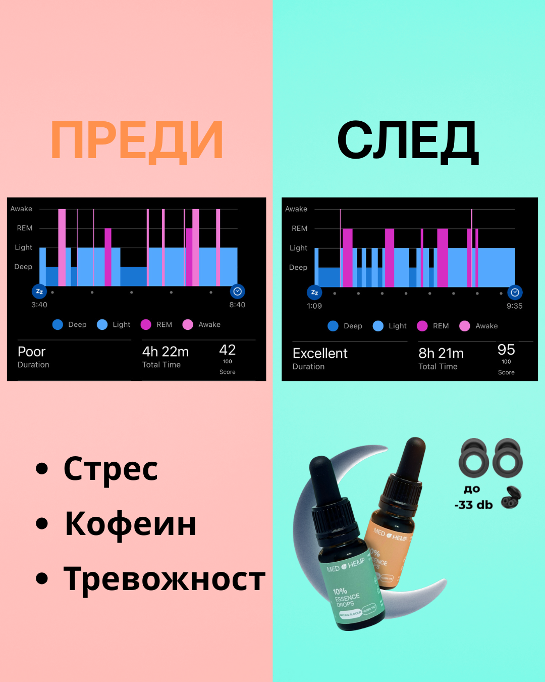 👉 Поръчай MedHemp Essence Drops и вземи безплатни тапи за уши с до -33 dB шумоизолация.